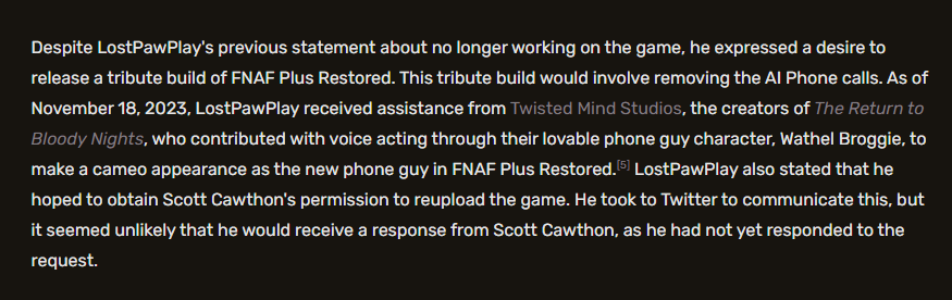 Again, we made the calls, but the game belongs to LostPaw and everything that is story wise is his decision.