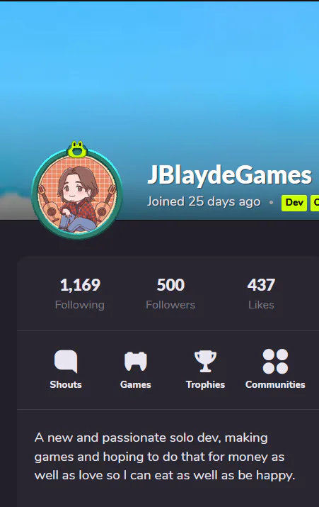 you are lucky number 500! Right now your possible prizes are 500 borgors or being set on fire! Let's hope for some more good suggestions and everyone make sure to check out their page on GameJolt!