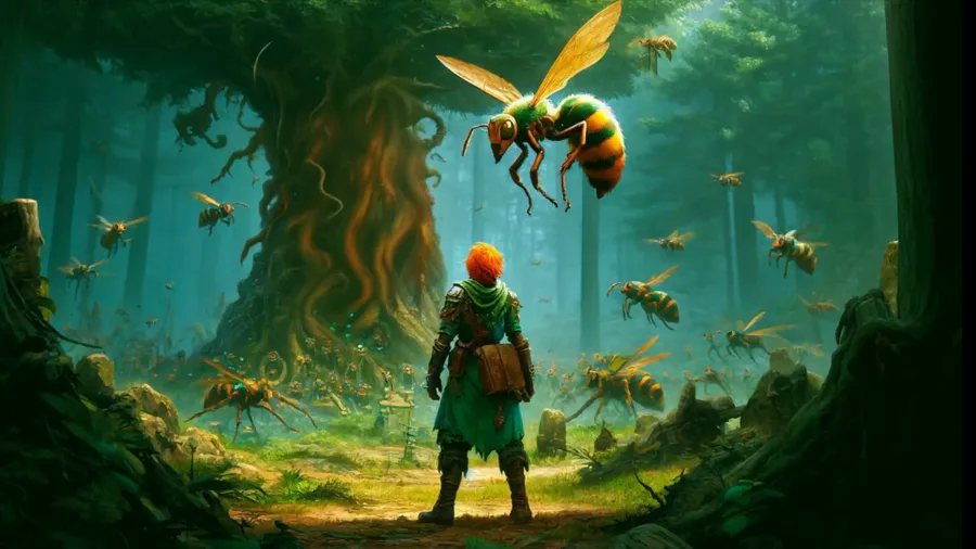 Loading...Just a small peak at one of the future side quests for the Dark Woods. It involves clearing a nest of Terror Wasps, defeating their Queen, and eventually looting the royal jelly to brew a potion. (WIP)