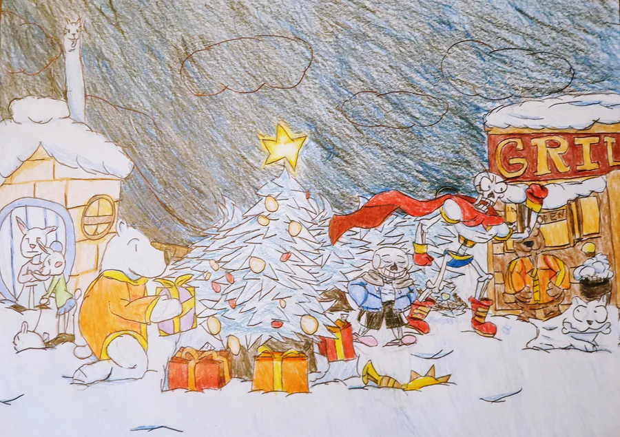Have this Snowdin town drawing i drew for my art class