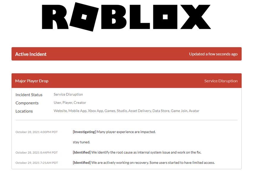Yes! Roblox is slowly coming back to life! But I think we're s'posed to refrain from playing any games temporarily. But I think we can all agree that the reason for the "Roblox is Down" (29/10/2021) theory is probably caused by the Chipotle Collab Event.