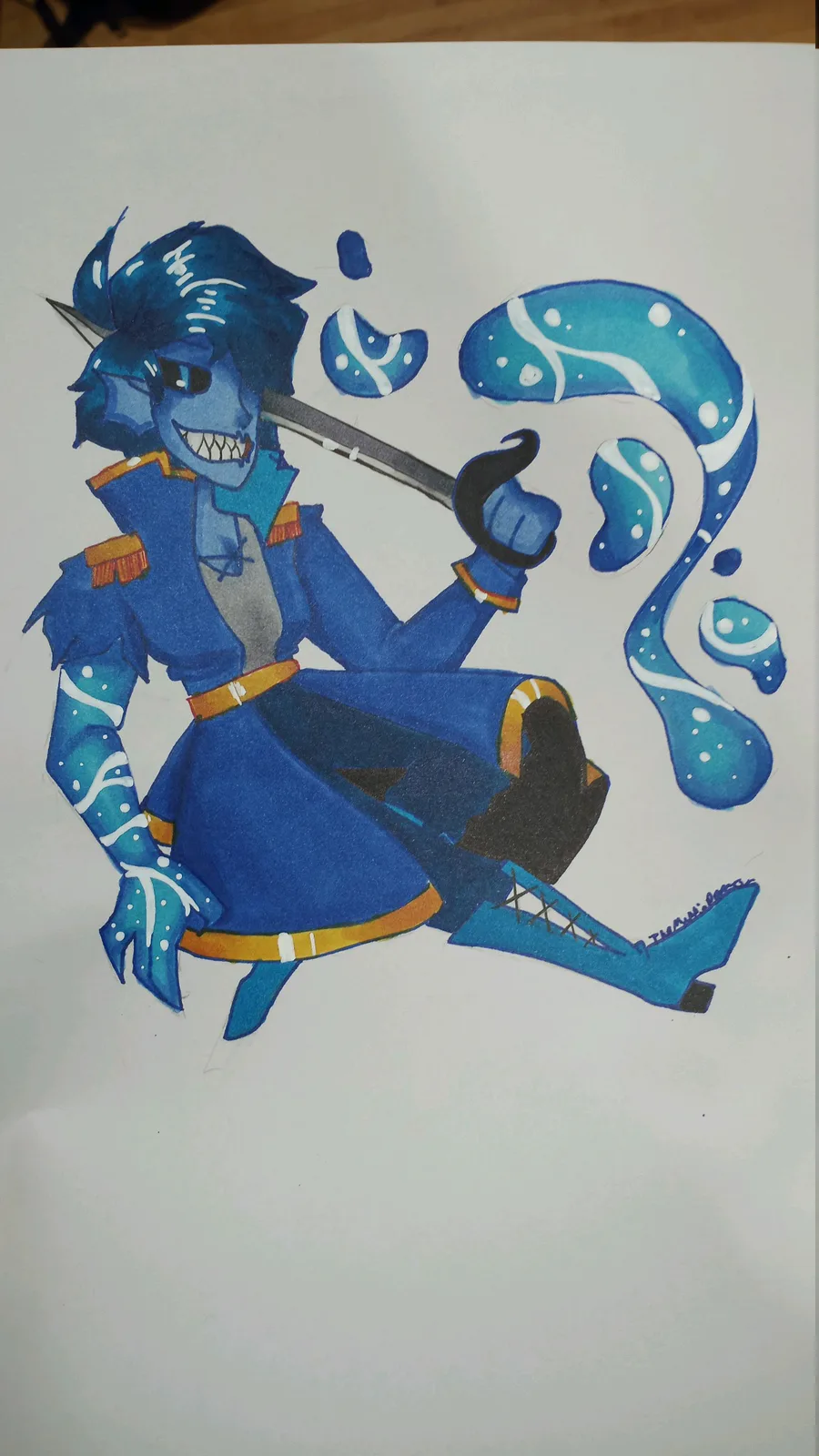 This is Captain Piranha, one of my favorites! She was originally human but got cursed by the seas to become one of the beast that lived in it. She's now one of the strongest Captains in the seas.