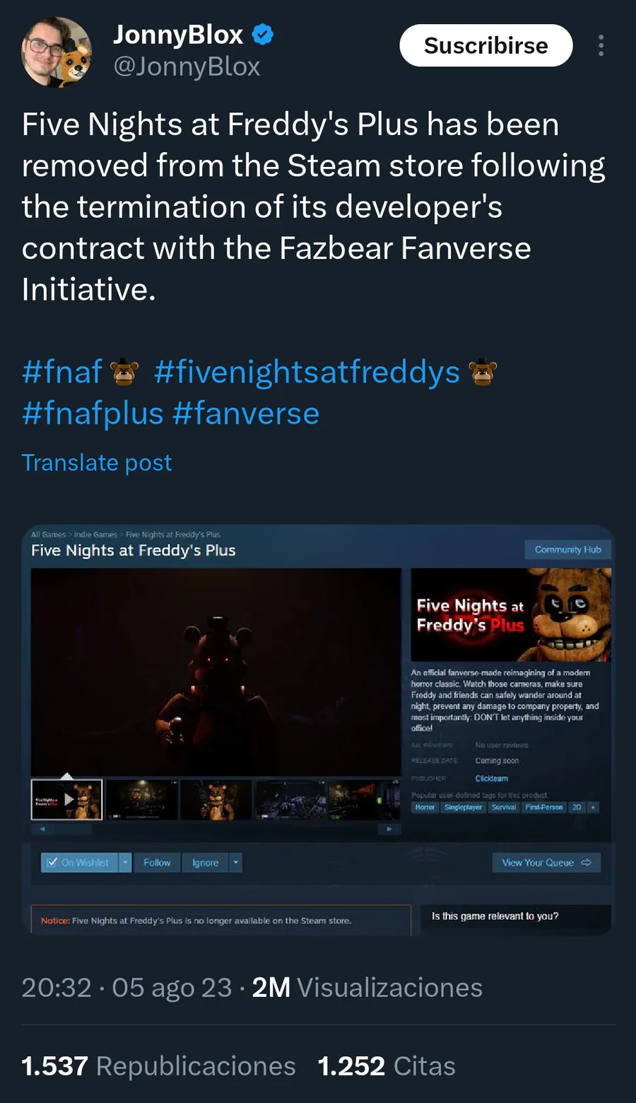 FNAF PLus is no longer available on steam...