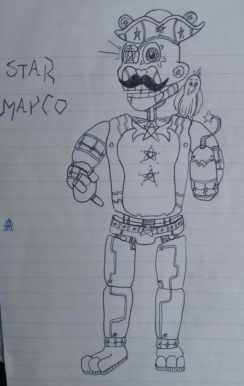 diseño1 del Personaje de Star Marco del Fnaf Army y diseño original y mejorado del Personaje de Star Marco del Fnaf Army