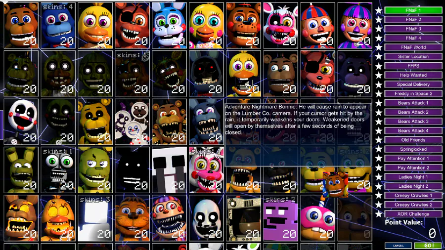 it also has campaign mode which is meh and lastly you can make custom theme, challenge and animatronic