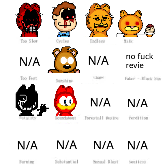 garfield mix shit yay! (garfielf will be too fest and gorefield will be manual blast, just didn't make designs for them yet) credit to duh_dumble for OG