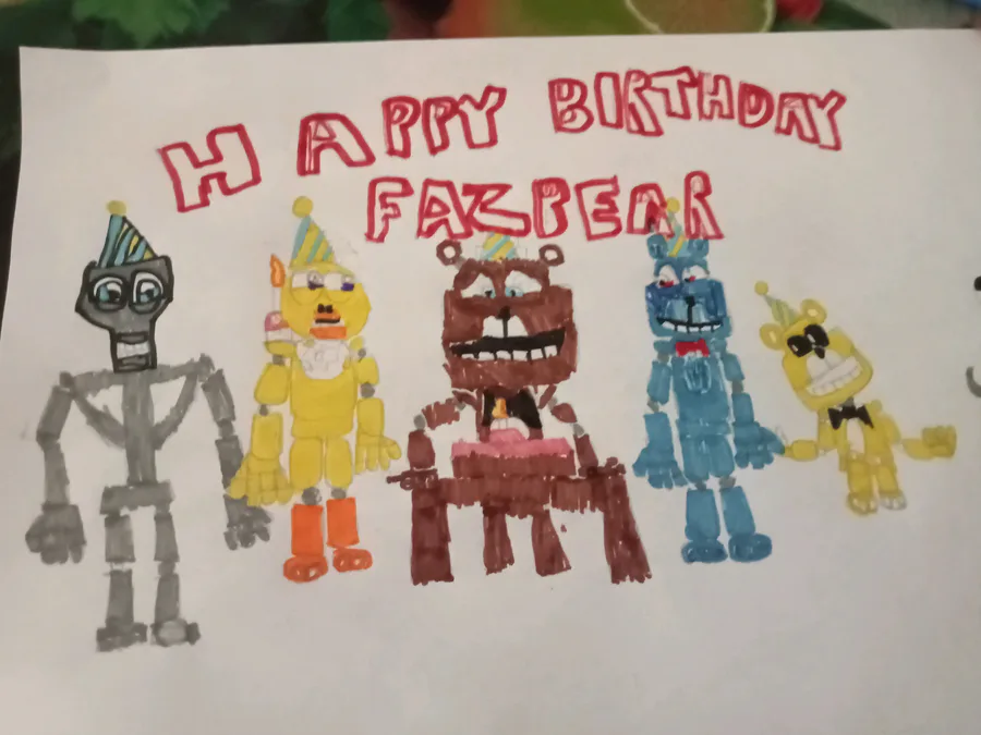 Wish Freddy a happy birthday i hope you like this it took 1 hour to finish this