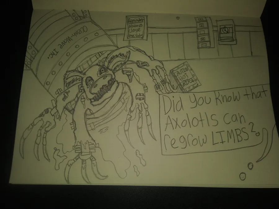 A rough sketch idea, but.. Did you know that in Asian culture Axolotl is considered a food delicacy? Oh and.. of course, they can regrow LIMBS. Nothing fancy today, just some line work, some perspective work.