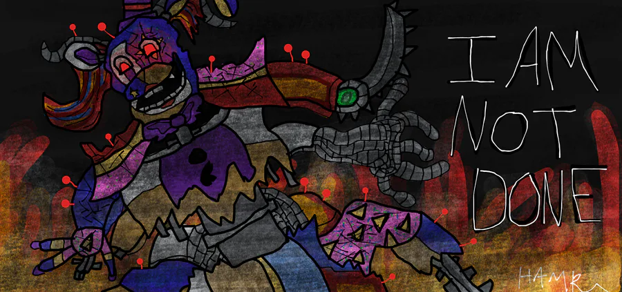 What if instead of the Blob there was a creature similar to the amalgamation in the Fazbear Frights Books? And instead of the Blob being "mindless" what if Golden Freddy was at the reins? Ready to drag the last bit of Afton back down, and down..