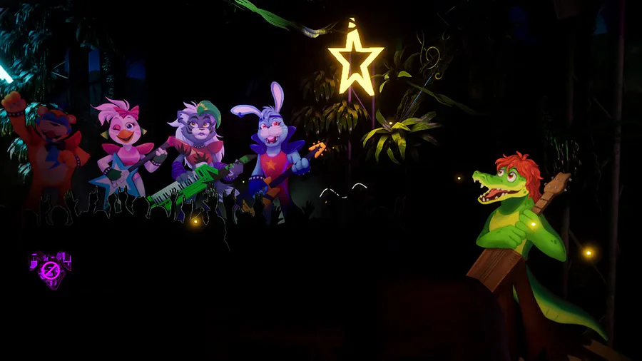 Gregory: Finds him self in a brightly lit Disney like mall, many hiding places, Glamrock Freddy