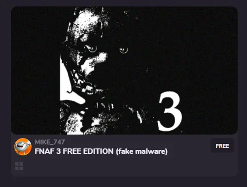 ho rilasciato fnaf 3 free edition (ps. se vi dice che potrebbe essere un virus sappiate che non lo è e che l'unica cosa che fa all'easterno del gioco è aggiungere un file di testo)