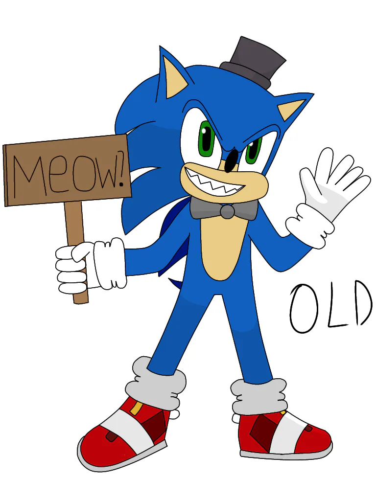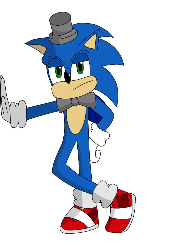 I decided to draw a skin idea for Sonic(FNaS 1). Meet - Clone Teen Sonic. It's just Sonic from the Movies, but with a bow tie and a top hat. He's also a Clone. I hope you like it.