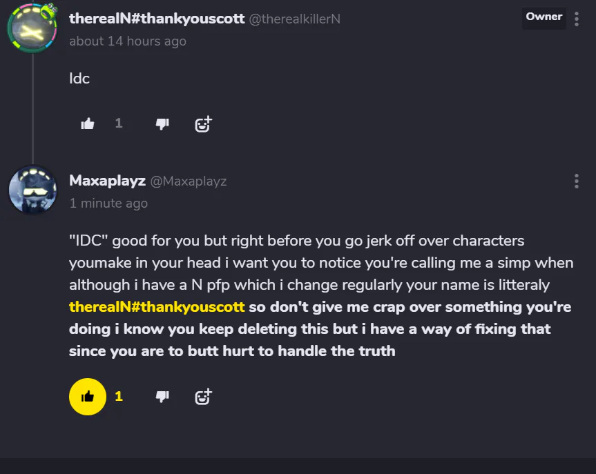 got a problem with somebody here's the conversation incase he deletes my comment again cause he can't handle being exposed this is the guy @therealkillerN