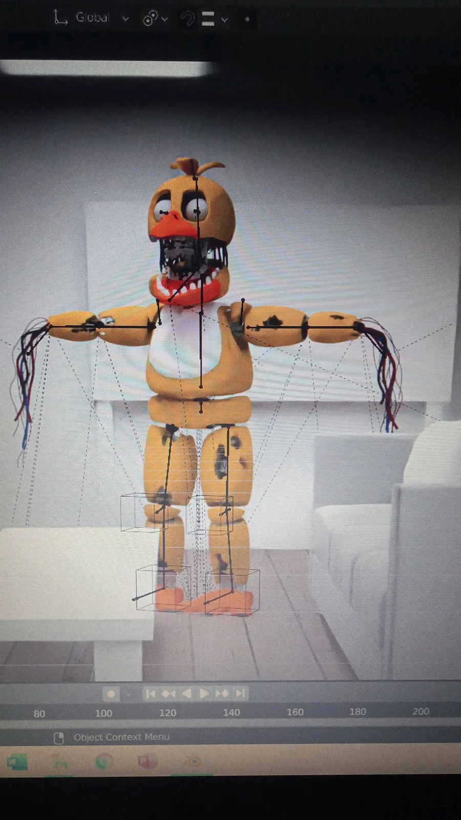 Hoy consegui este modelo de Withered Chica. Le retoque un poco el modelado aun que aun hay que trabajarlo un po Otra cosa a mejorar son las texruras ya que son muy planas.