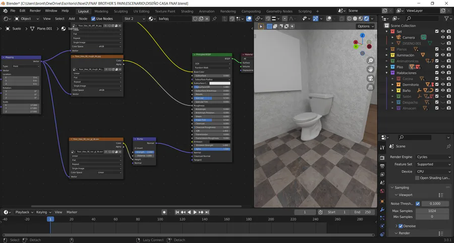 Hoy rehice todas las texturas para que tuvieran más calidad. Cambie el tono de la sábana a uno más oscuro e hize una textura para la pared. Por último añadà el váter +texturas.