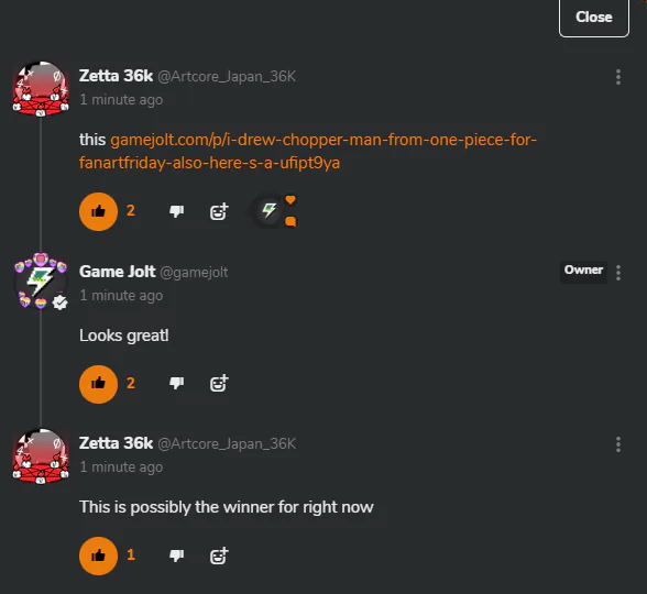 On one of Gamejolt's Posts, i commented a simple link with This before the link, also later gamejolt commented Looks Great!