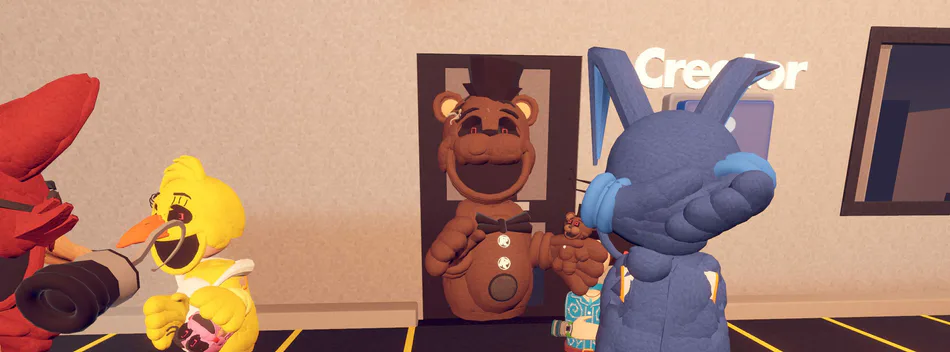 Hello Quick Game Update,This A Game Exclusive for Players in Rec Room Screen mode or Rec Room VR.(VR Recommended for The Best Experience.)Name Reveal: AHappyTune,Here is The Happytune Design Concept of Freddy.Hope u Enjoy.P.S Dont Steal.