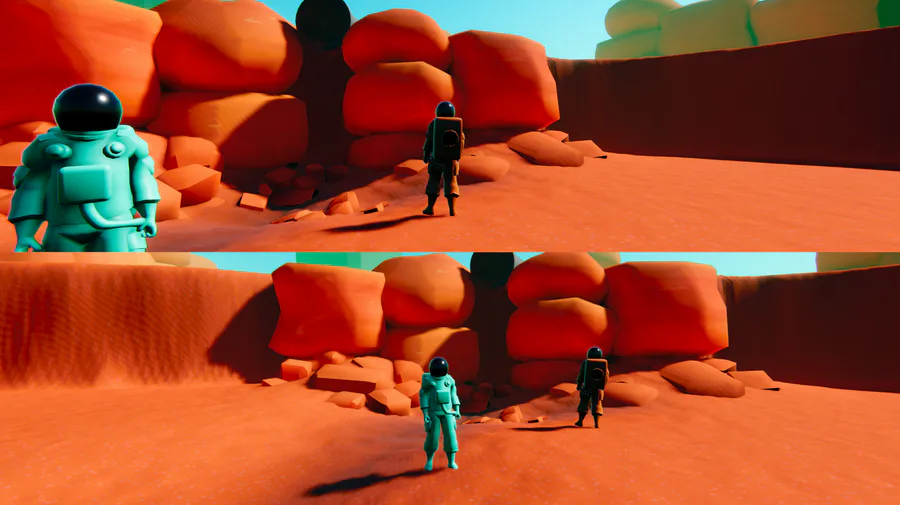 Messing around with split-screen setups, artstyles, and lighting methods! So many ideas floating around in my head... Might turn this into a little playable demo :)