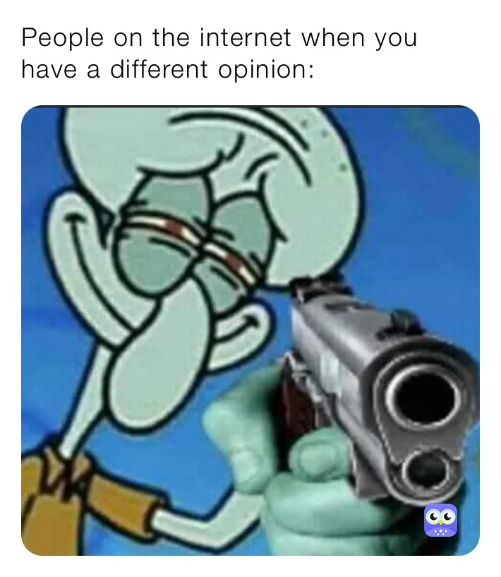SECOND DAY OF RANDOM MEMES LIKE AND FOLLOW OR SQUIDWARD WILL SHOT YOU