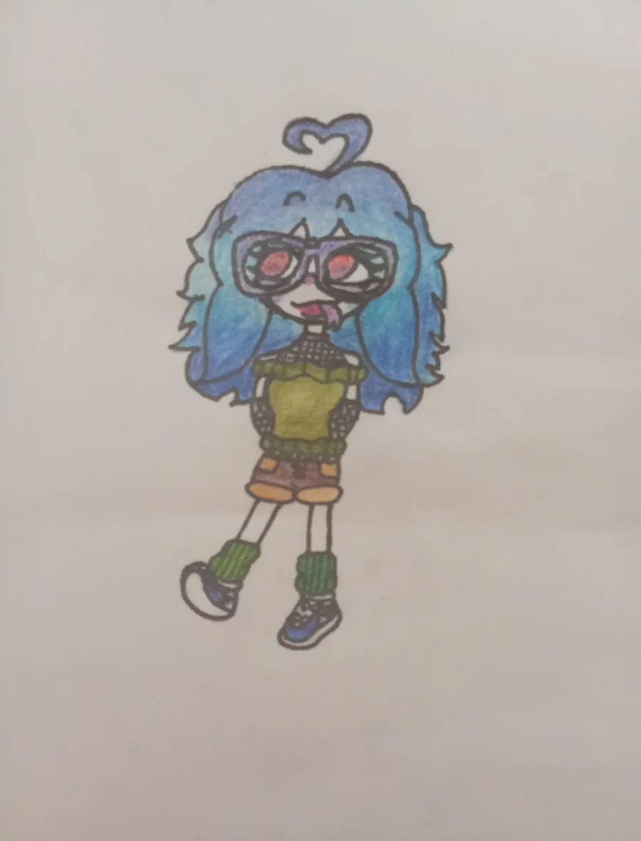 I made this other lil doodle of Skyee where I made her rlly tiny and made her eyes rlly big :D I also decided what colour palette she has cuz I've been wondering how to colour her.