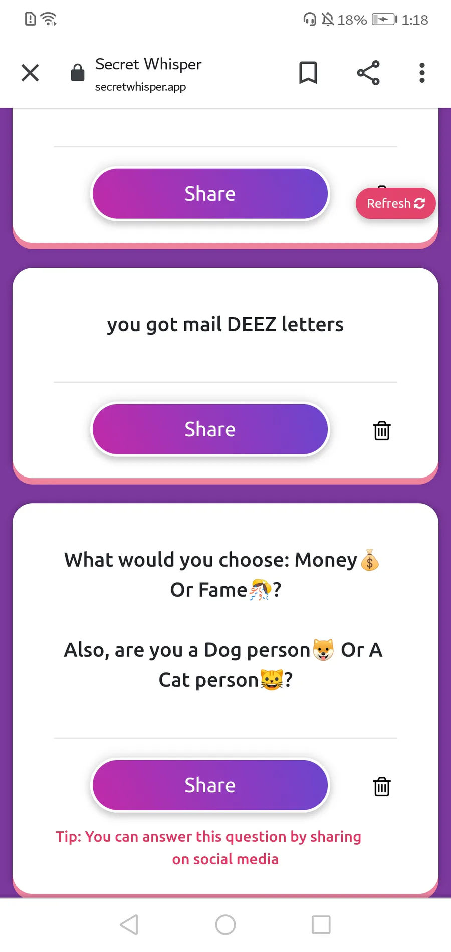 3- no one, I only want more friends and great life for me, my friends and family, money or be famous is nothing for me