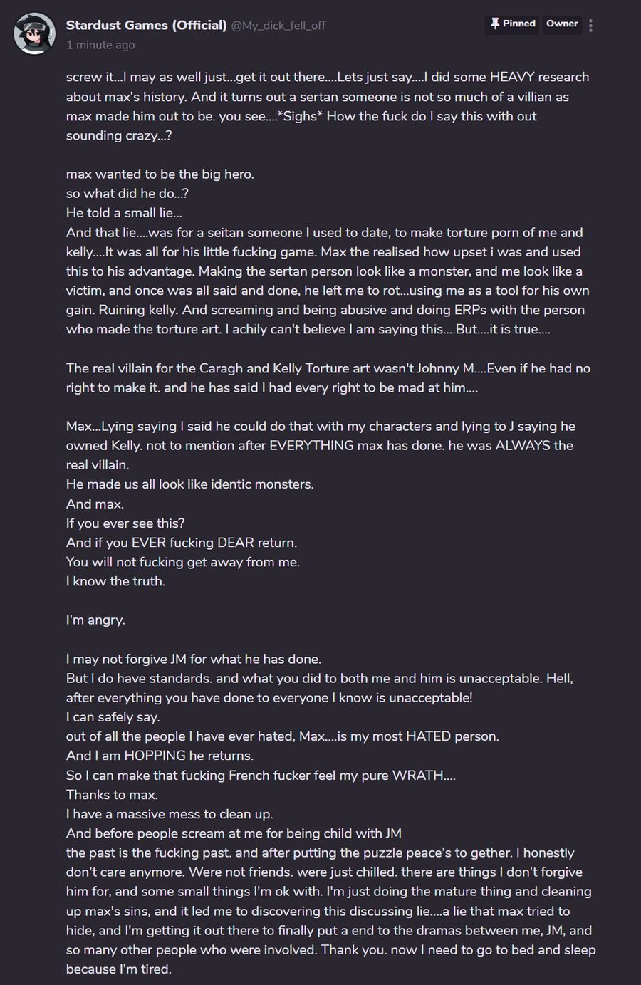 that makes me hate him more than anything ells. and it involves a massive conflict that went on for years. And...lets just say. once I explain it all (read pinned comment please...