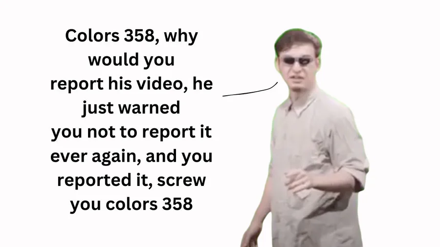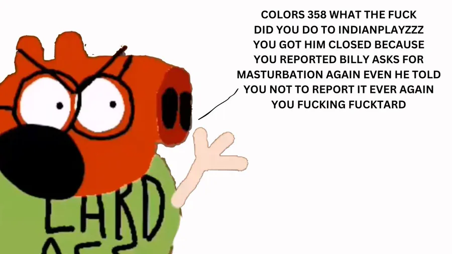 hold on a second? colors 358 is the one who reported billy asks for masturbation again?!? WHAT!!!! I THOUGHT I ADDED A WARNING SIGN TO PREVENT THIS VIDEO FROM GIVING ME THE COPYRIGHT STRIKE, i think colors 358 couldn't red the warning sign