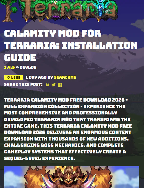 As soon as the new version of Terraria came out, I started looking for a Calamity mod adapted for it. This post was the only one I could find. If anyone's interested, here's the link https://reject41.itch.io/terraria-loader/devlog/1339815/calamity…