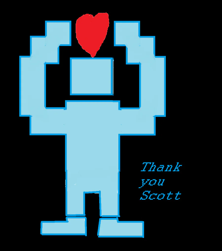#ThankyouScott Thank you Scott for all you have done for everyone, you have change many lives, including mine. If it wasn't for you, I wouldn't have enjoyed coding games. Thank you Scott for everything, and I wish the best for you and your family =)