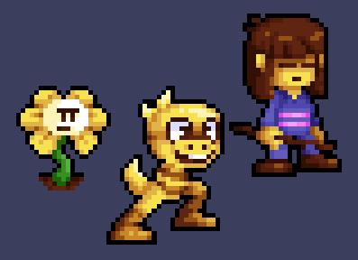 Happy 6th Anniversary Undertale & Welcome back DeltaRune. Idrew pixel art of Flowey, Monster Kid, and of course Frisk.