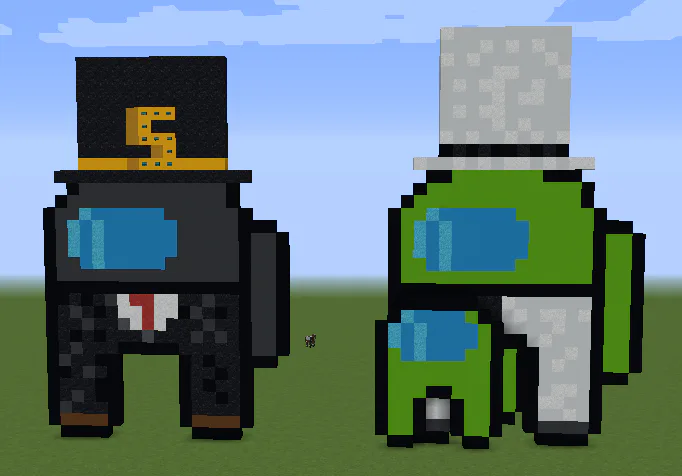 I made me and my friends among us characters in Minecraft as pixel art