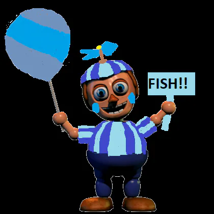 #fanart This Is A Custom Animatronic, I Call It Gonzalo The Animatronic. Is Like A Balloon Boy But He Haves Another Colors And He Gives To The Kids Who Love Fishing A Toy Fish