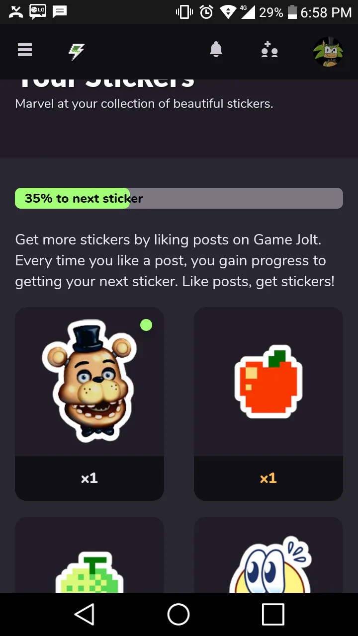 We couldn't help ourselves, we had to do a fun update for the #FNaF community on Game Jolt as well! We've added a sticker that you can unlock by liking posts and comments on Game Jolt.