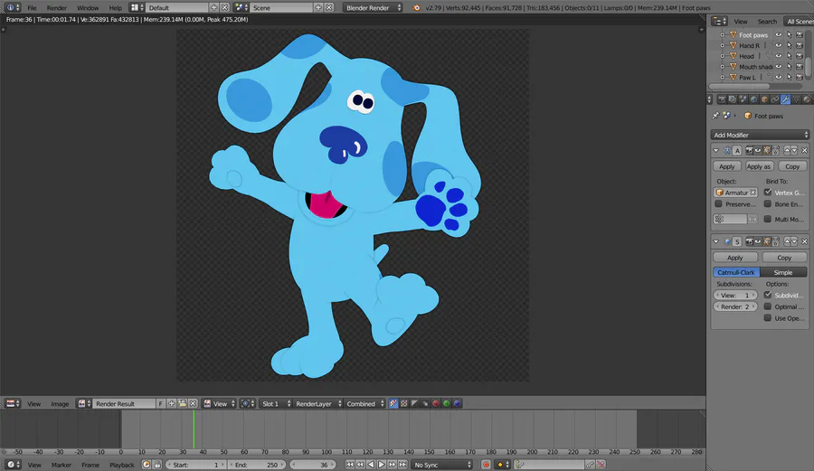Wanted to try a different kind of model, so I modeled Blue and Magenta from Blue's Clues ^^