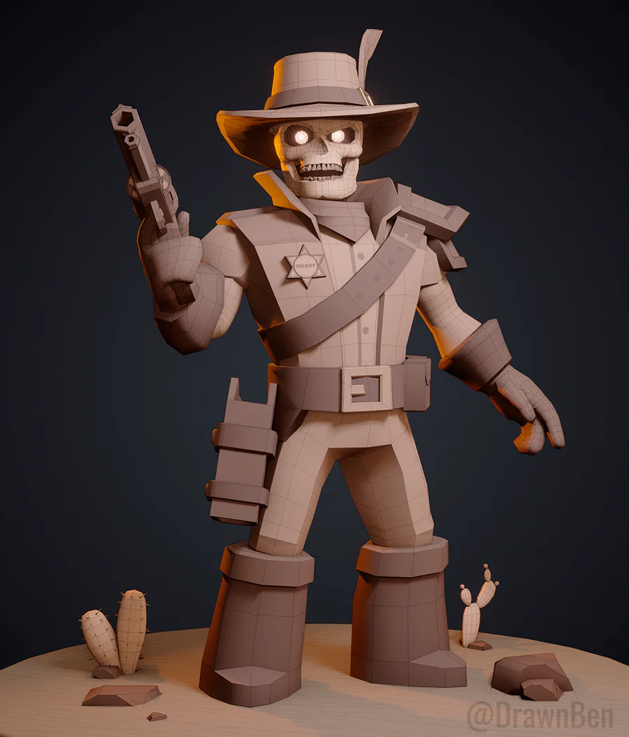 It's been a while since I posted anything, so I did this low poly character before the year ends, This is the Sherif MacBones, made in blender for games, Hope you like It!