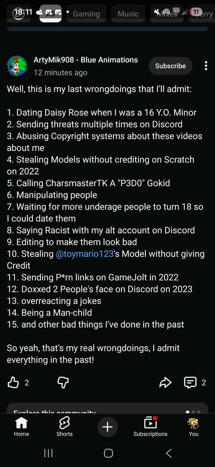 FINALLY ARTYMIK908 BLUE ANIMATIONS HAS ADDMITTED OF HES ACTIONS IN THE PAST