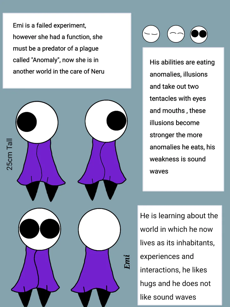 This character sheet was redesigned, here is more information about Emi and her lore