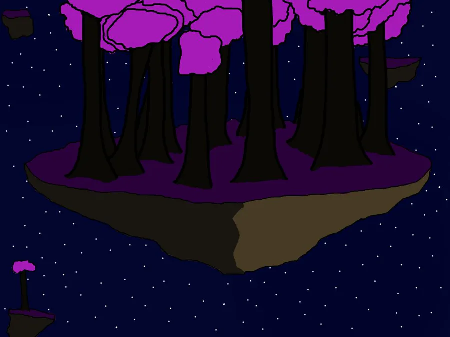 Here is a purple/pink forest on a Floating island (Idea from @NIcofnafpro29530) I still need some ideas for drawings since I want to post one every day for this entire month