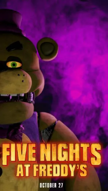 Remastericé un poster que hice sobre la película de FNaF con el modelo Fanmade de Fredbear en Blender 3.0.