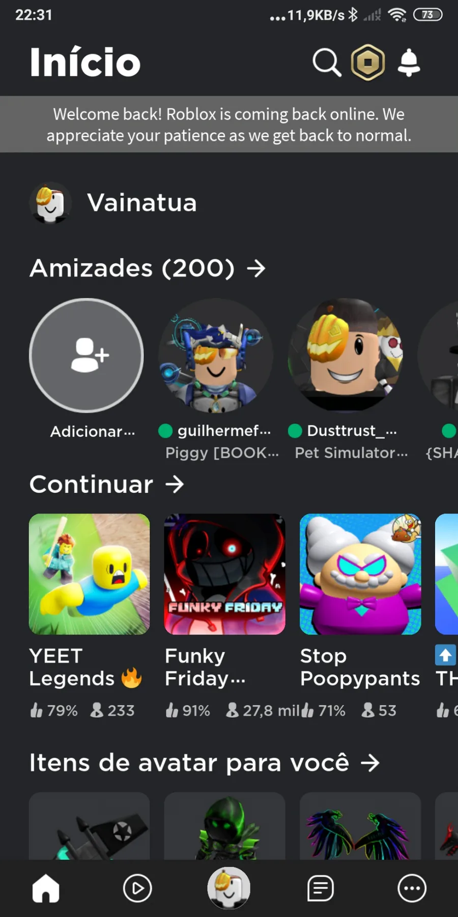 Roblox voltou (print de ontem)