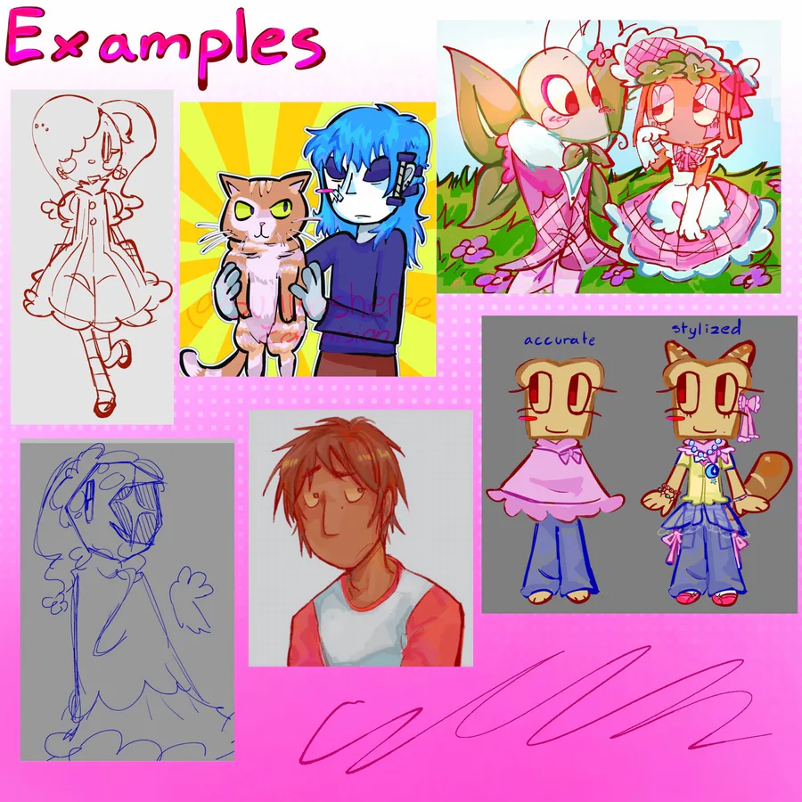 I'm opening up commissions, starting at as low as $2 for doodles, and as low as $15 for Character Busts!