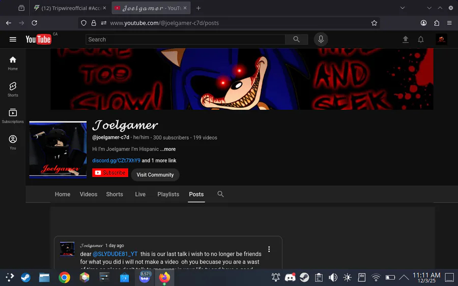 please report joelgamer he has been threatening me to stab me with a knife and a rope go report him now pls get him banned here is his yt pls banned him be safe my followers so my depression goes better