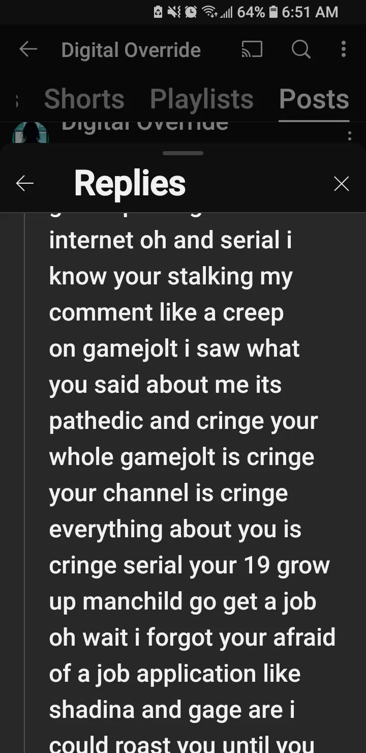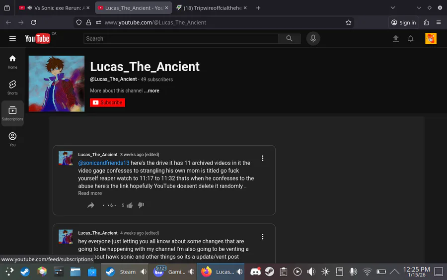 hey look guys Lucas the executioner is being very delusional and insane once again he still thanks he is sonic.exe killer in my opinion he is possessed by a demon LOL XD