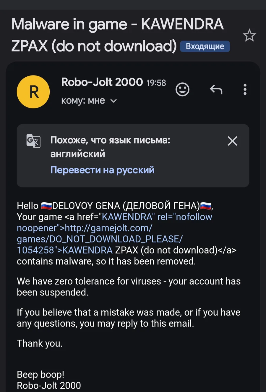 Ребята я вернулся просто в моей игре KAVENDRA ZPAX нашли вирус, и меня забанили на 4 дня
