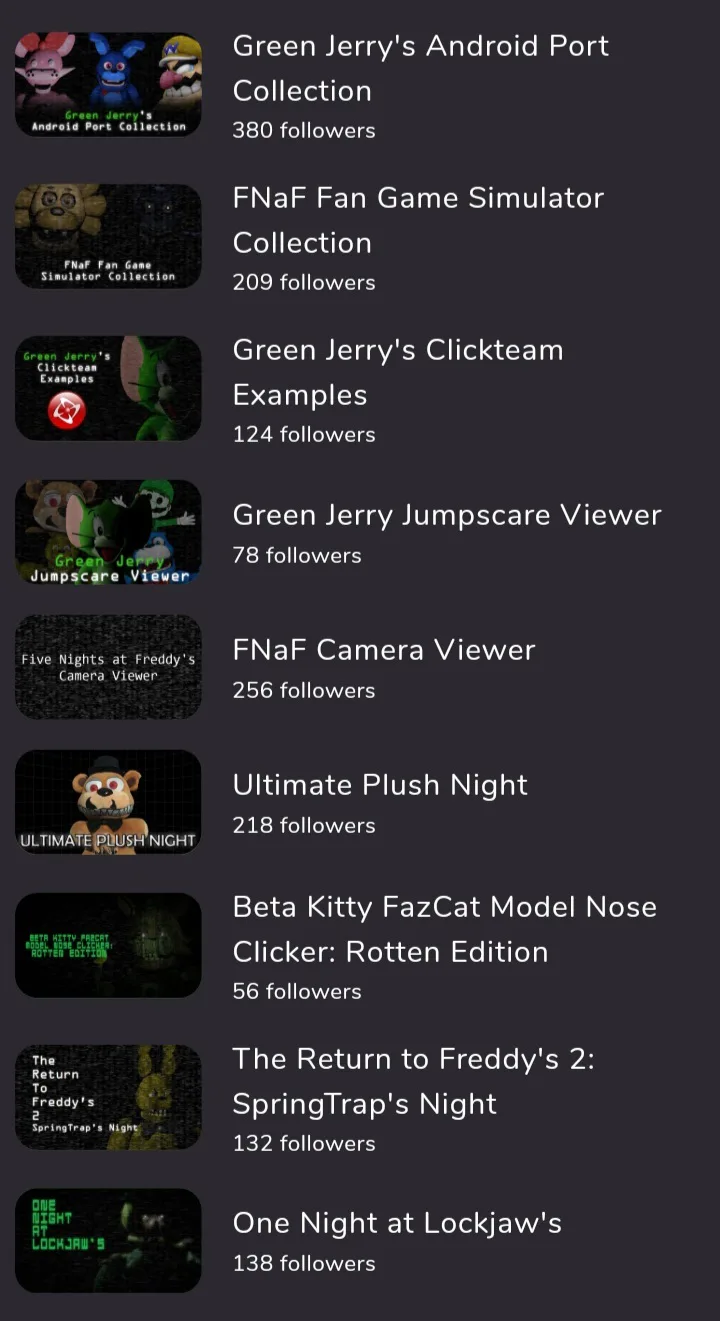 Before greenjerry delete his gj account, I finally got these screenshot of greenjerry's old fnaf fangame and users will reupload these game soon