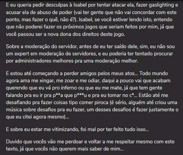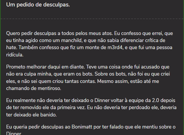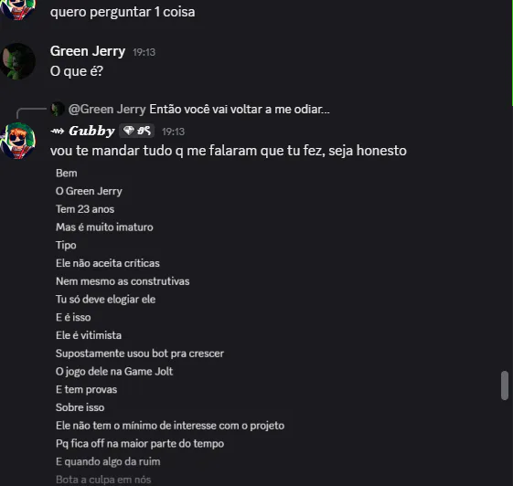 Provas de confissão e a futura carta de desculpas do já citado Green Jerry