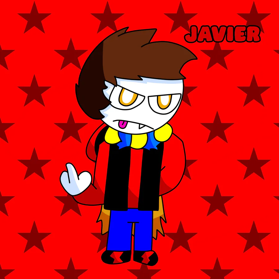 Javier redesign he has sharp hair and a torn bowtie and cape to show is rebleness