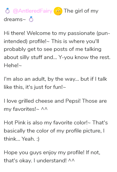I changed my bio! How does it look so far?~ :)