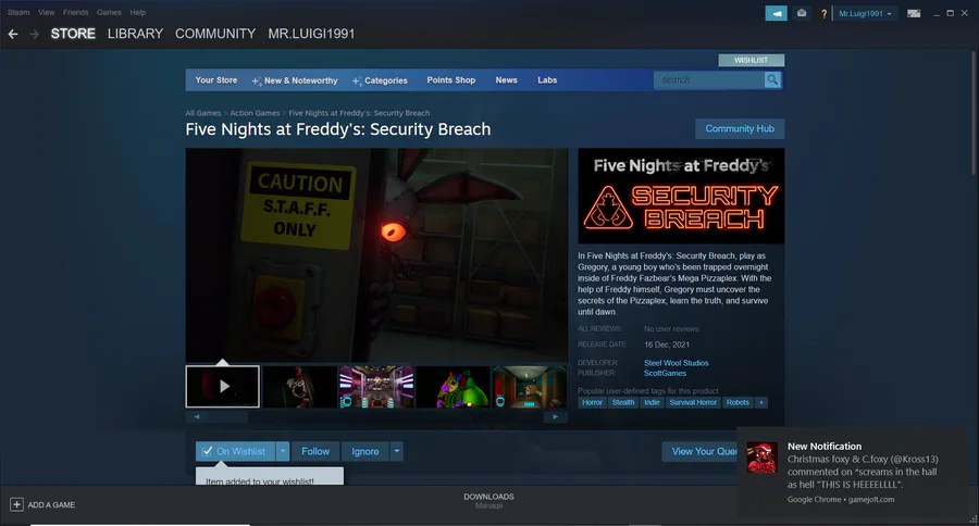 The official Steam page for Five Nights at Freddy's Security Breach has been posted!