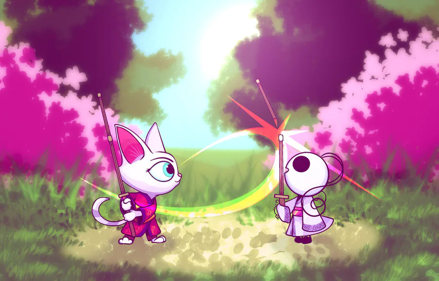 Left character is Emiko from "Paws of Fury: The Legend of Hank" because she is adorable. (Also the movie is really funny. I enjoyed the Hell out of it.)